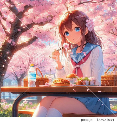 桜と小学生女児 Generative AI