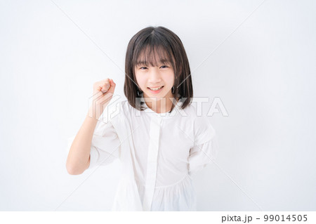女の子 小学生 ガッツポーズ 俯瞰