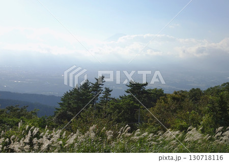 足柄城跡のススキと雲に隠れる富士山/静岡県小山町・9月