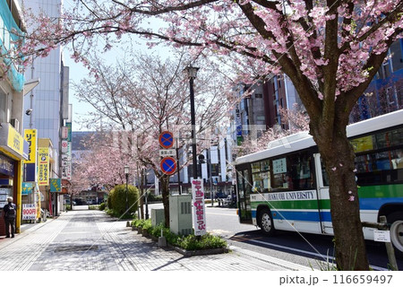 栃木県小山市 JR小山駅西口前通りと満開の思川桜