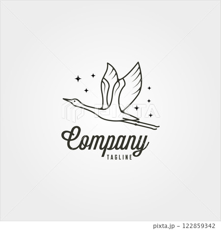 vector of goose in river plant logo design, line art flying swan logo design