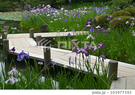 6月の京都平安神宮 神苑の花菖蒲と八ツ橋