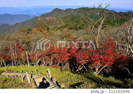 丹沢山地の蛭ヶ岳 シロヤシオの紅葉に袖平山と姫次を望む