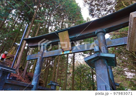 信濃三十三観音霊場小菅山菩提寺(第十九番札所)小菅神社の大鳥居と杉並木