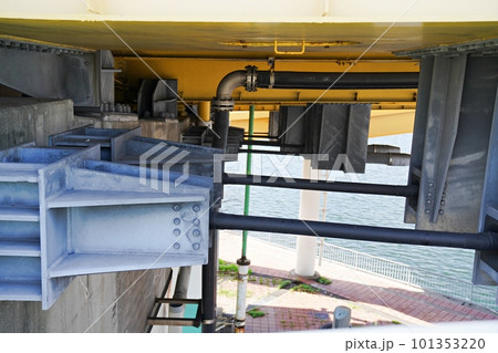 大阪 泉大津 泉大津大橋の橋桁(落橋防止構造)(春)