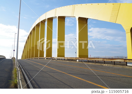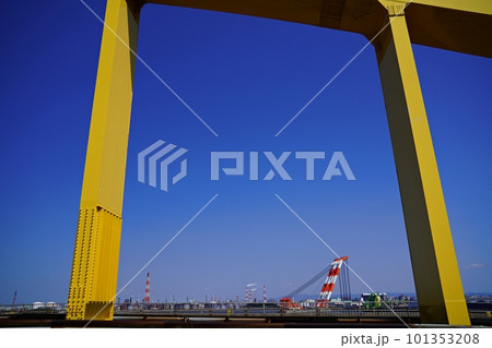大阪 泉大津 泉大津大橋の単弦アーチと工場群(高砂)(春)