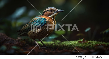 Blue Bird-of-Paradise close up with plants background. Generative AI
