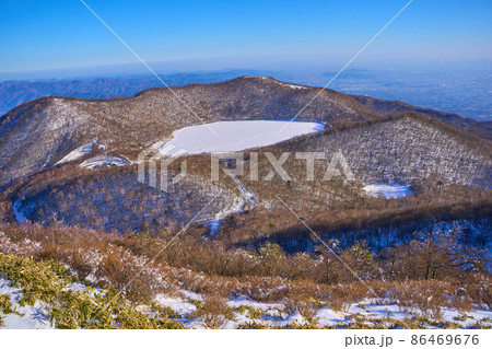 冬の群馬県赤城山 地蔵岳山頂から南東側の小沼方面を見る