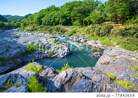 春 長瀞渓谷の景色 石畳付近の瀞場