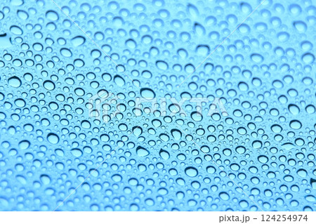 水滴と撥水加工された自動車のボンネットのイメージ素材 水色