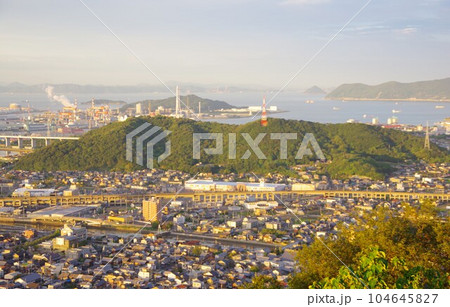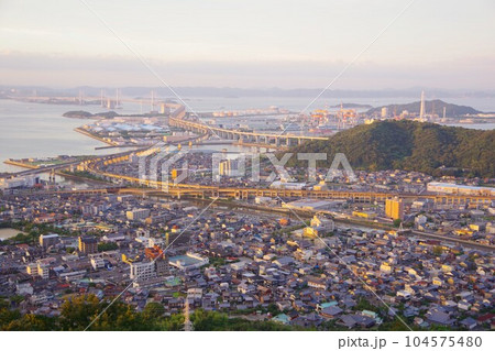 香川県 夕暮れに青ノ山山頂展望台から瀬戸大橋方面を望む