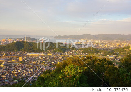 香川県 夕暮れに青ノ山から玉野市・五色台・坂出市方面を望む