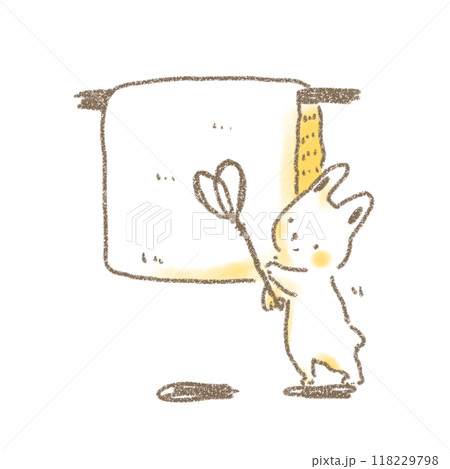布団たたきをもって布団を干す可愛いうさぎのデフォルメイラスト