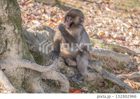 おやつを食べる子ザル 嵐山モンキーパークいわたやま