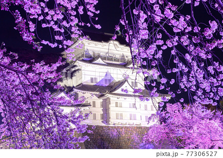 神奈川県小田原市 夜の小田原城と夜桜