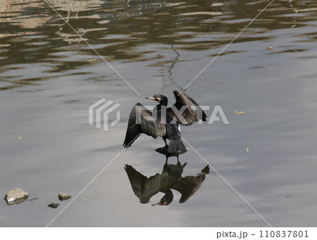 羽を広げるカワウ