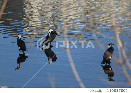 水辺に群れるカワウ