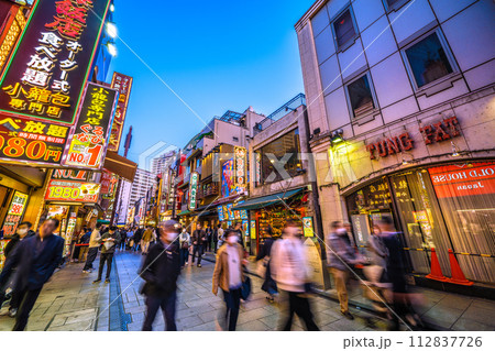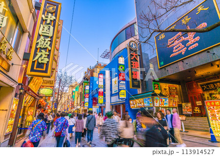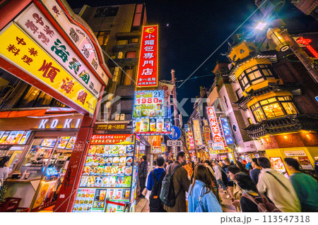 日本の横浜都市景観 4月・観光客らで賑わう横浜中華街。コロナ禍前と変わらない…希望の時代へ=14日