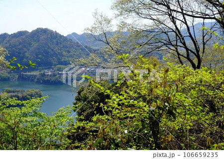 ハイキングコースから見た津久井湖の風景 【相模原市津久井 4月】
