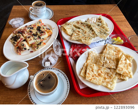 トルコ風のピザ、ピデの朝食