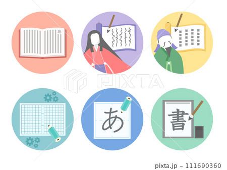 国語科目のフラットなアイコンセット