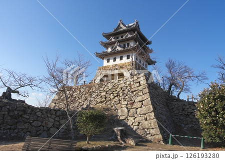 春の兵庫県洲本市の洲本城跡(模擬天守)