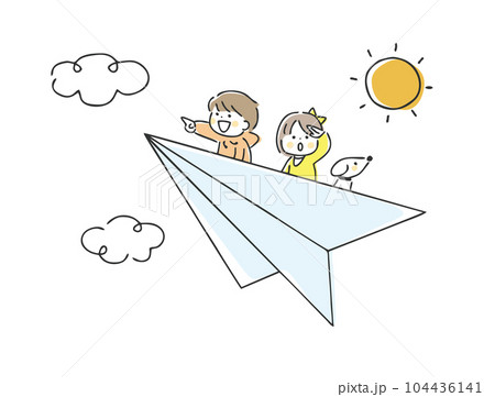紙飛行機に乗っている子供