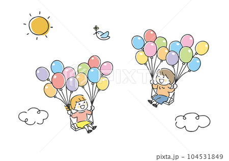 風船で空を飛ぶ子供たち