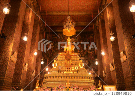 The golden sitting Buddha statue is made of bronze and is enshrined in Wat Phra Chetuphon Wimonmangklaram or Wat Pho is popular with both Thai and foreign tourists.