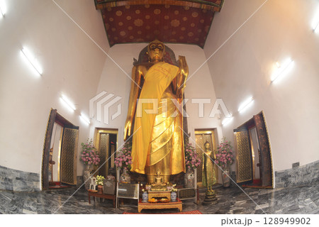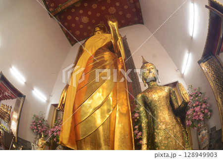 The standing Buddha statue is made of bronze and is enshrined in Wat Phra Chetuphon Wimonmangklaram or Wat Pho is popular with both Thai and foreign tourists. Located at Bangkok city in Thailand.