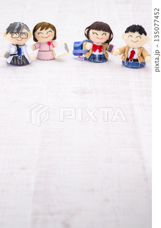 医師、看護師、高校生の人形と健康診断の結果の用紙