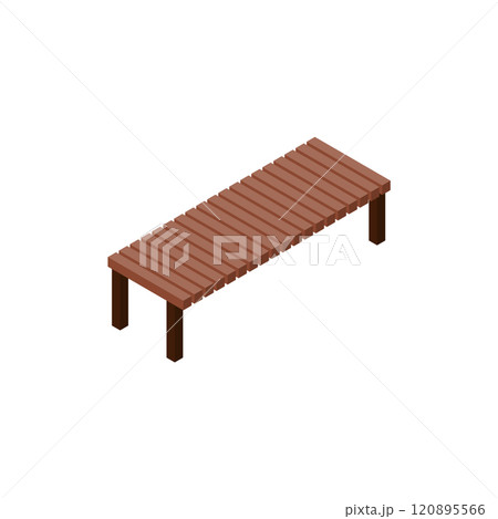 アイソメトリックなウッドベンチのイラスト。左面法。