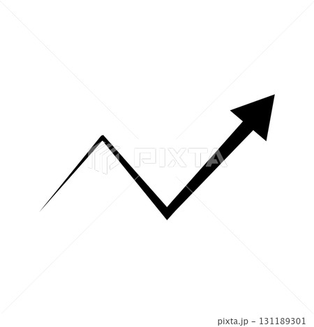 ジグザク上下しながら上方向に向かう尻すぼみ黒矢印のベクターイラスト素材