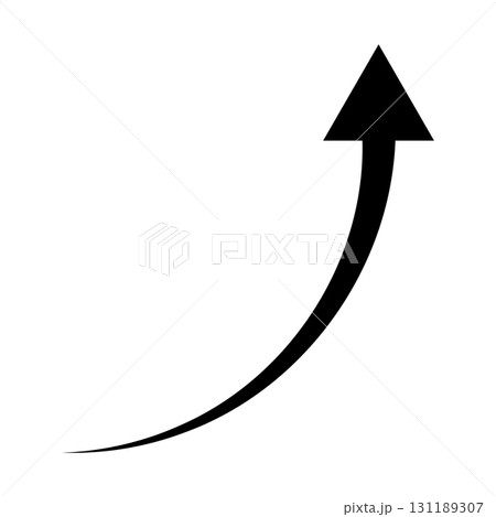 カーブしながら上昇する尻すぼみ黒矢印のベクターイラスト素材