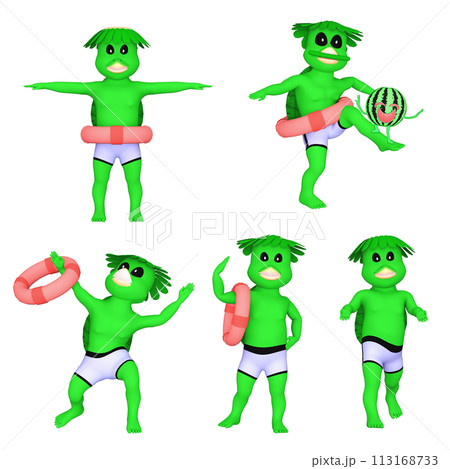 河童小僧の 水遊び禁止ポーズと溺れるスイカくん 水難事故の文字入れ用素材