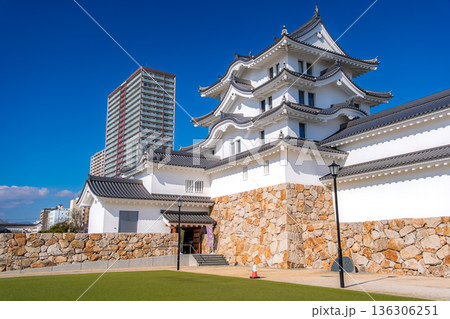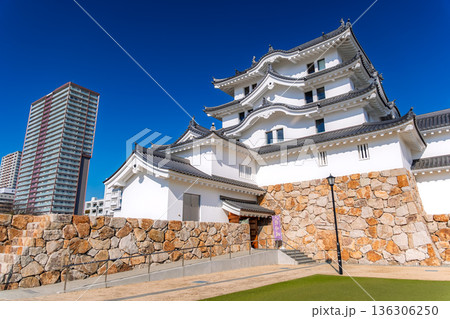 兵庫県尼崎市 青空に輝く白亜の尼崎城