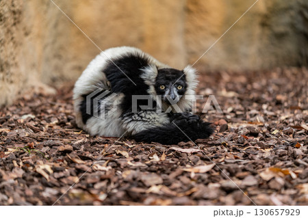 Black-and-White Ruffed Lemur Resting on Forest Floor