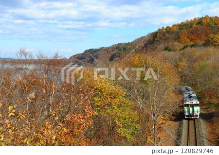 秋の大沼国定公園を行く函館本線キハ40
