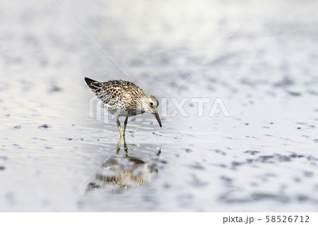 背高鷸セイタカシギ 干潟で食事中
