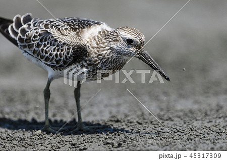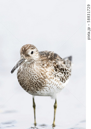 生き物 野鳥 オバシギ、体長は三十センチ弱。短い首と太めの胴体、嘴は長いほう