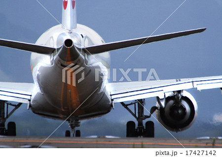 ジェット噴射する旅客機(離陸準備)
