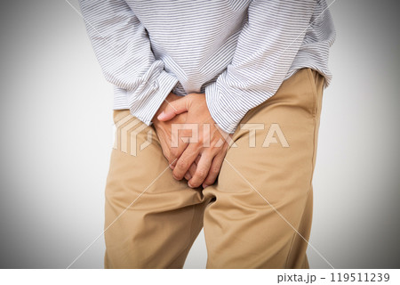 股間を抑える女性 尿意 尿漏れ お湯漏れ