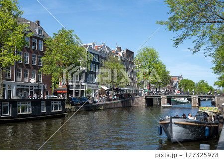 アムステルダム・運河沿いの風景/オランダ