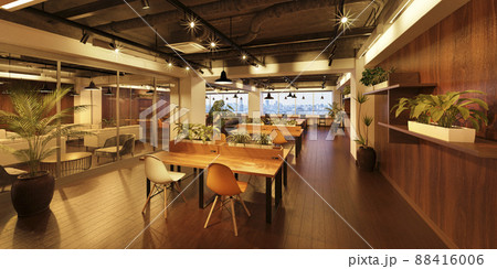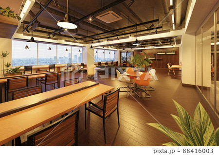 モダンなコワーキングスペースのインテリア / リモートワーク・ソロワーク・シェアオフィスのイメージ
