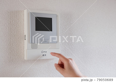 室内用(屋内)インターフォン(インターフォン)テレビドアフォンのモニターと手指