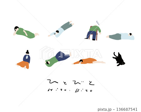 だらだらくつろぎ休憩する人々のフラットイラスト