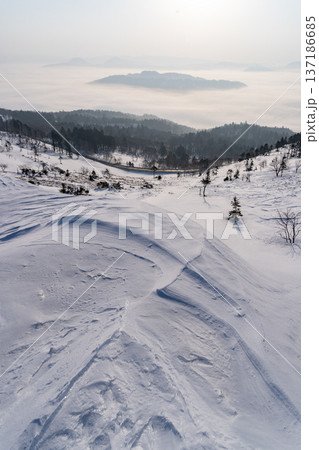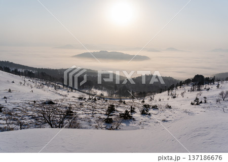 雲海に包まれる屈斜路湖の冬景色