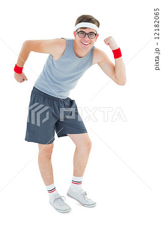 Geeky hipster posing in sportswear