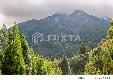 新緑若葉と杉 神が宿る山 洋上アルプス屋久島
