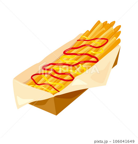 水彩で描いたケチャップ付きのアメリカンドッグ―コーンドッグ―のイラスト